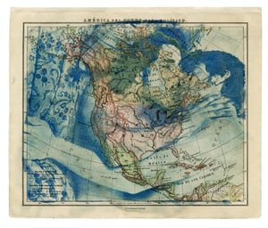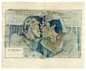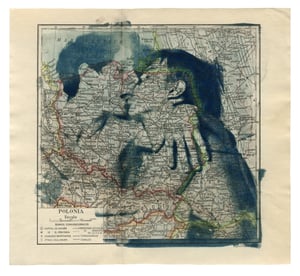 Cyanotype on vintage map, 30 x 25 cm / 11 x 9 inches aprox each